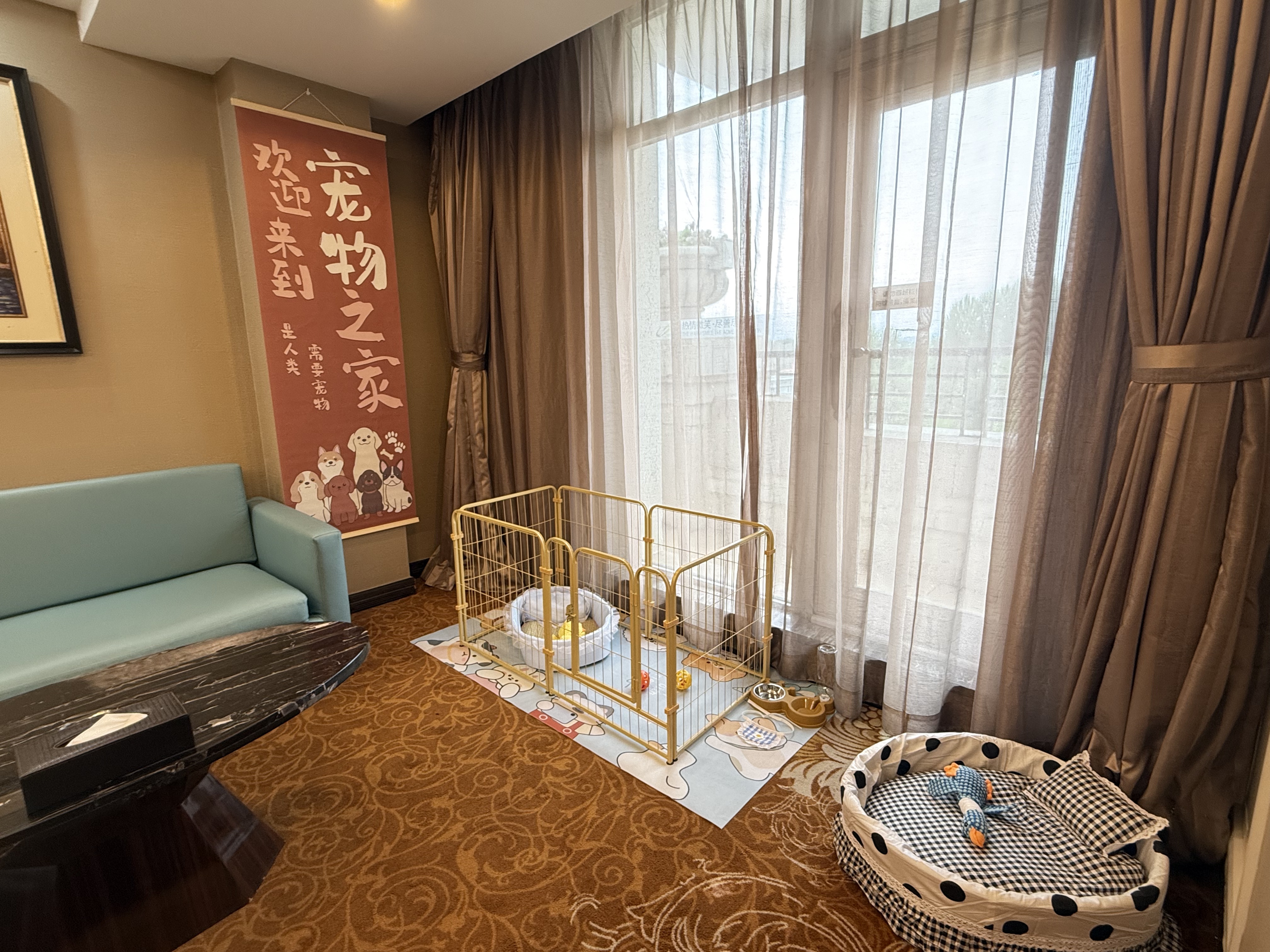 宠物友好主题房(专属宠物窝+镂空栅栏+定制玩具)